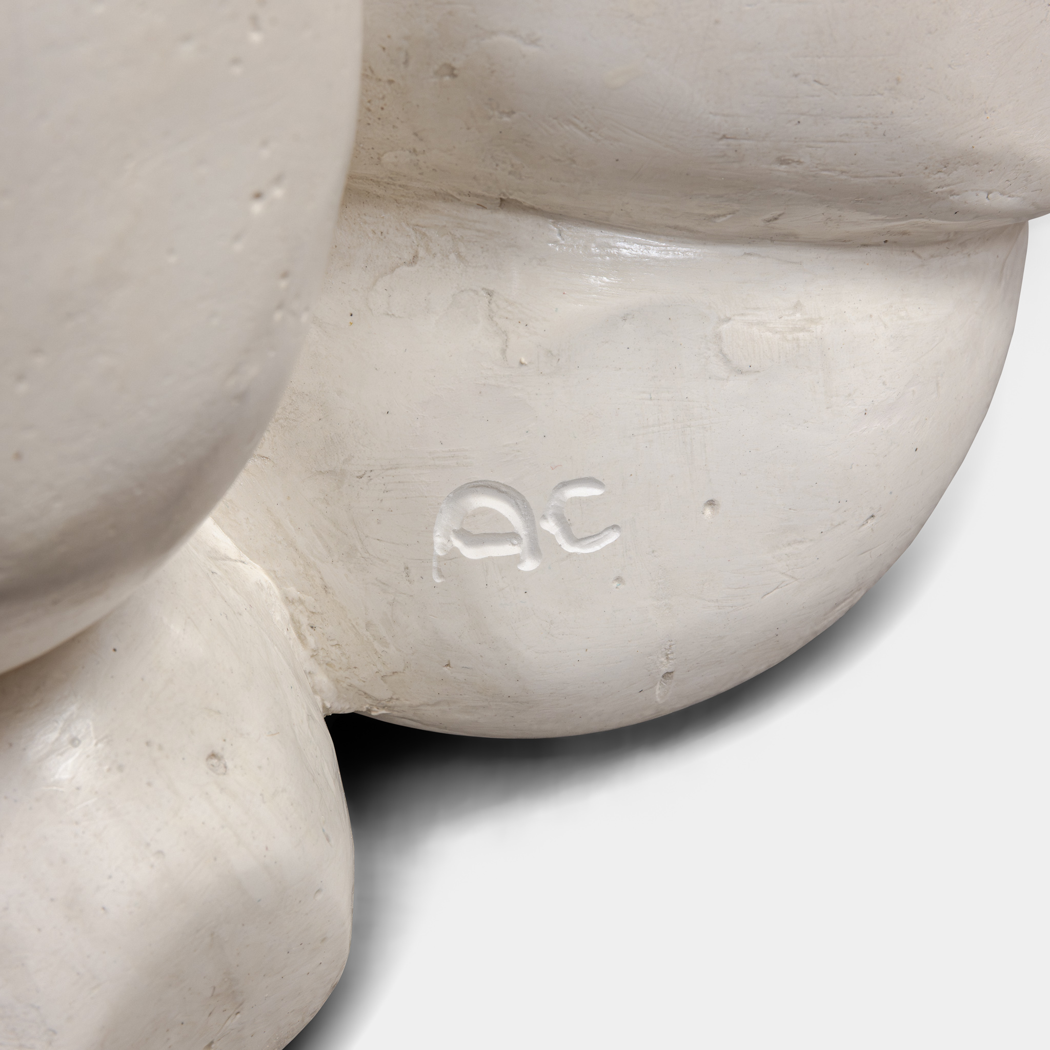 Today, while preserving her artistic DNA, Amélie Caussade’s work is evolving toward geometric abstraction. She develops sculptural series in gypsum: a sedimentary rock used since Antiquity. Starting from metal frameworks that she wraps in wool weavings, Amélie shapes volumes through successive layers of gypsum, which she sands, polishes, and lacquers until a smooth surface emerges. Like a body, the metal-initially rigid-becomes interwoven, thickens, turns into flesh, and grows welcoming.